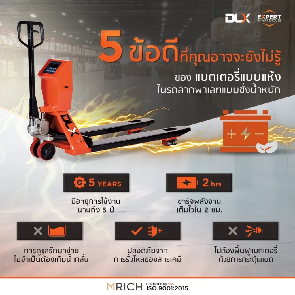 5 ข้อดี ที่คุณอาจจะยังไม่รู้ของแบตเตอรี่แบบแห้ง ในรถลากพาเลทแบบชั่งนํ้าหนัก (SCALE PALLET TRUCK)