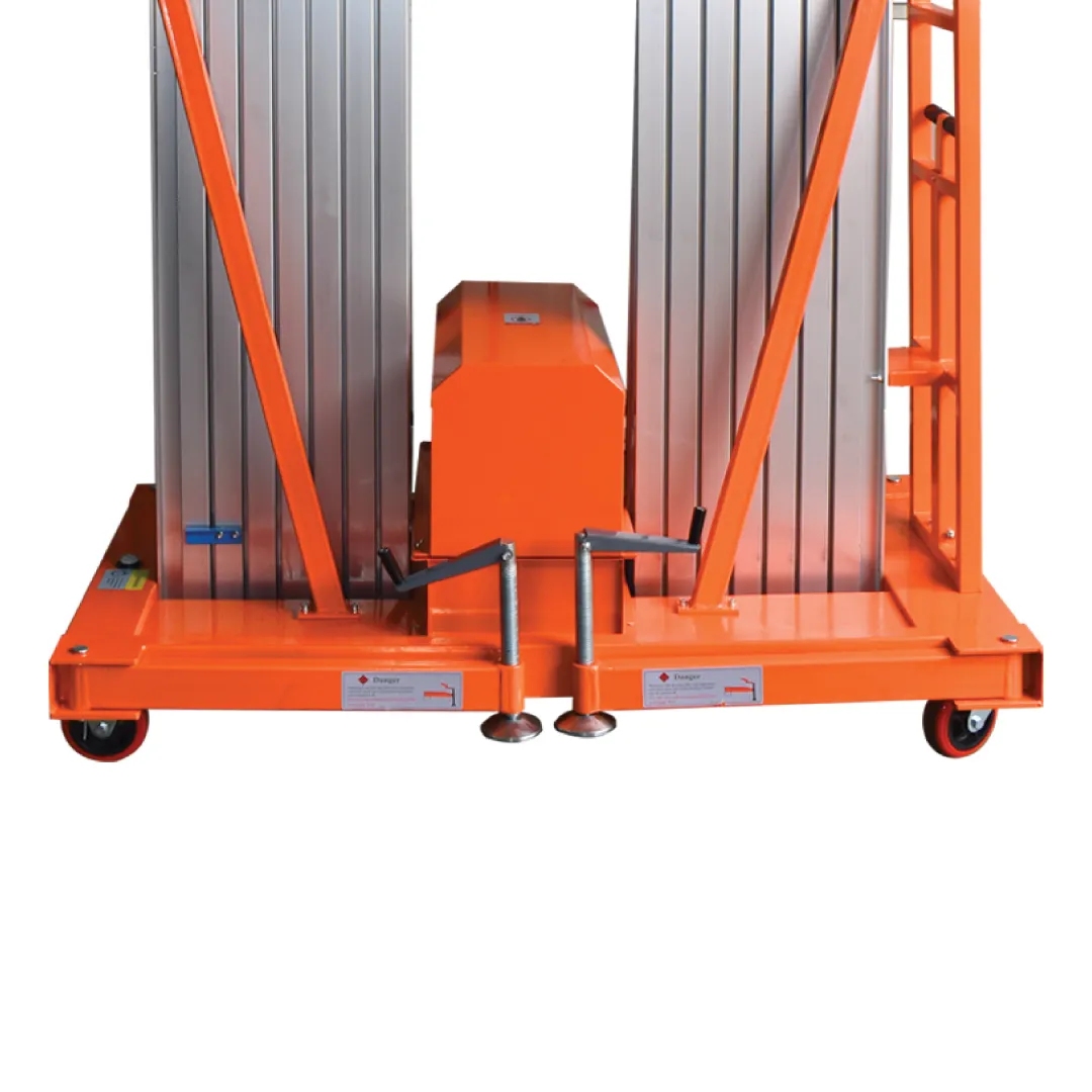 ใช้เสาอลูมิเนียม 2 เสาทำงานพร้อมกัน ช่วยกระจายน้ำหนักและแรงยกอย่างสมดุล เพิ่มความมั่นคง ลดการสั่นไหว และเหมาะสำหรับการทำงานในระดับความสูงอย่างปลอดภัย