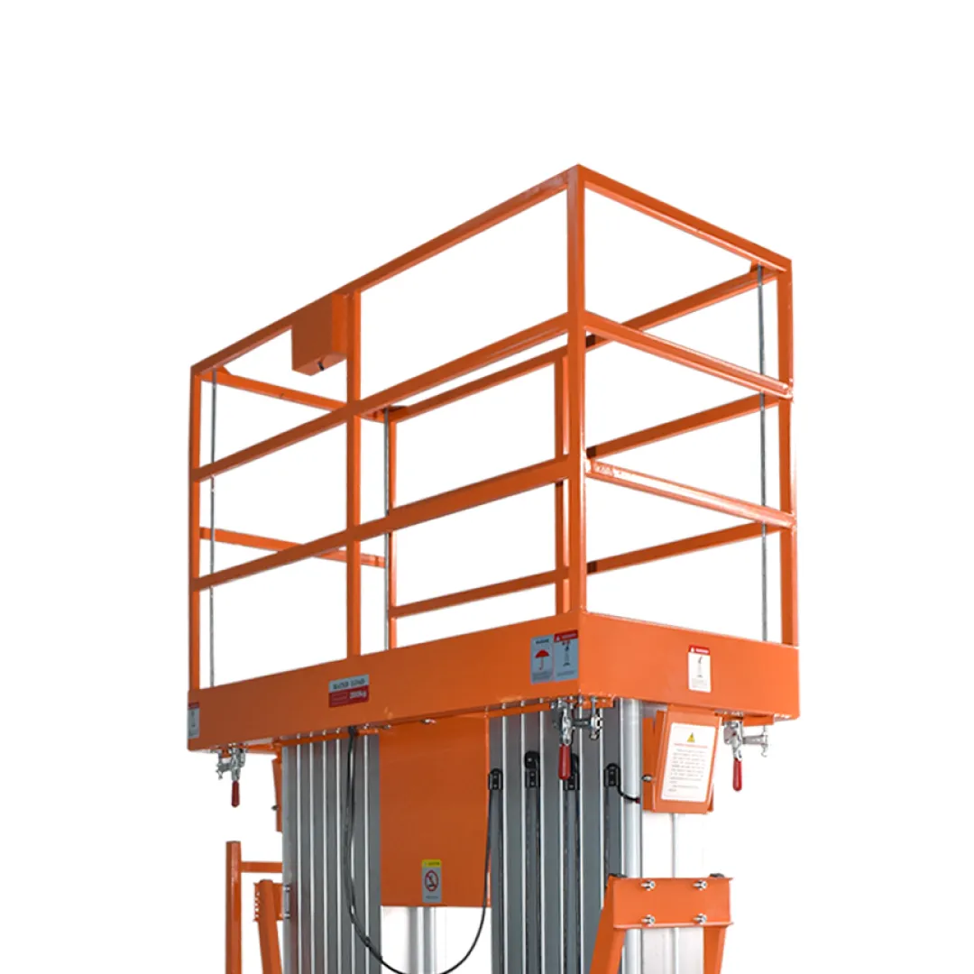 ใช้โซ่ยกแบบคู่ควบคุมการขึ้น–ลงของแท่น ทำงานร่วมกับกระบอกไฮดรอลิกอย่างสอดประสาน ช่วยเสริมความเสถียรและความมั่นใจในการยก รองรับการทำงานในระดับความสูงได้อย่างปลอดภัยและต่อเนื่อง