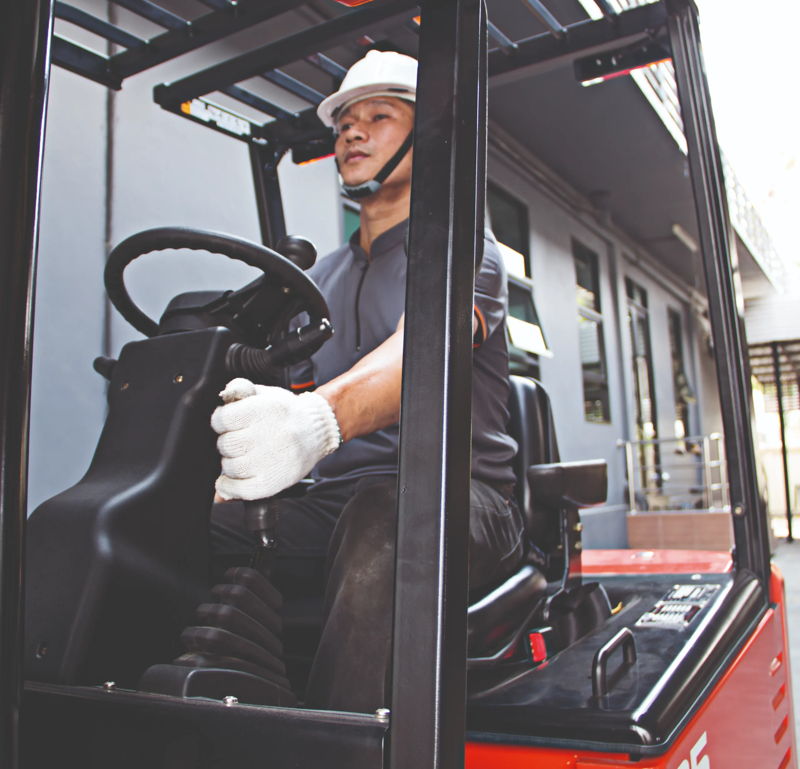 - หลังคาป้องกัน (Overhead Guard) และอุปกรณ์ป้องกันผู้ขับ